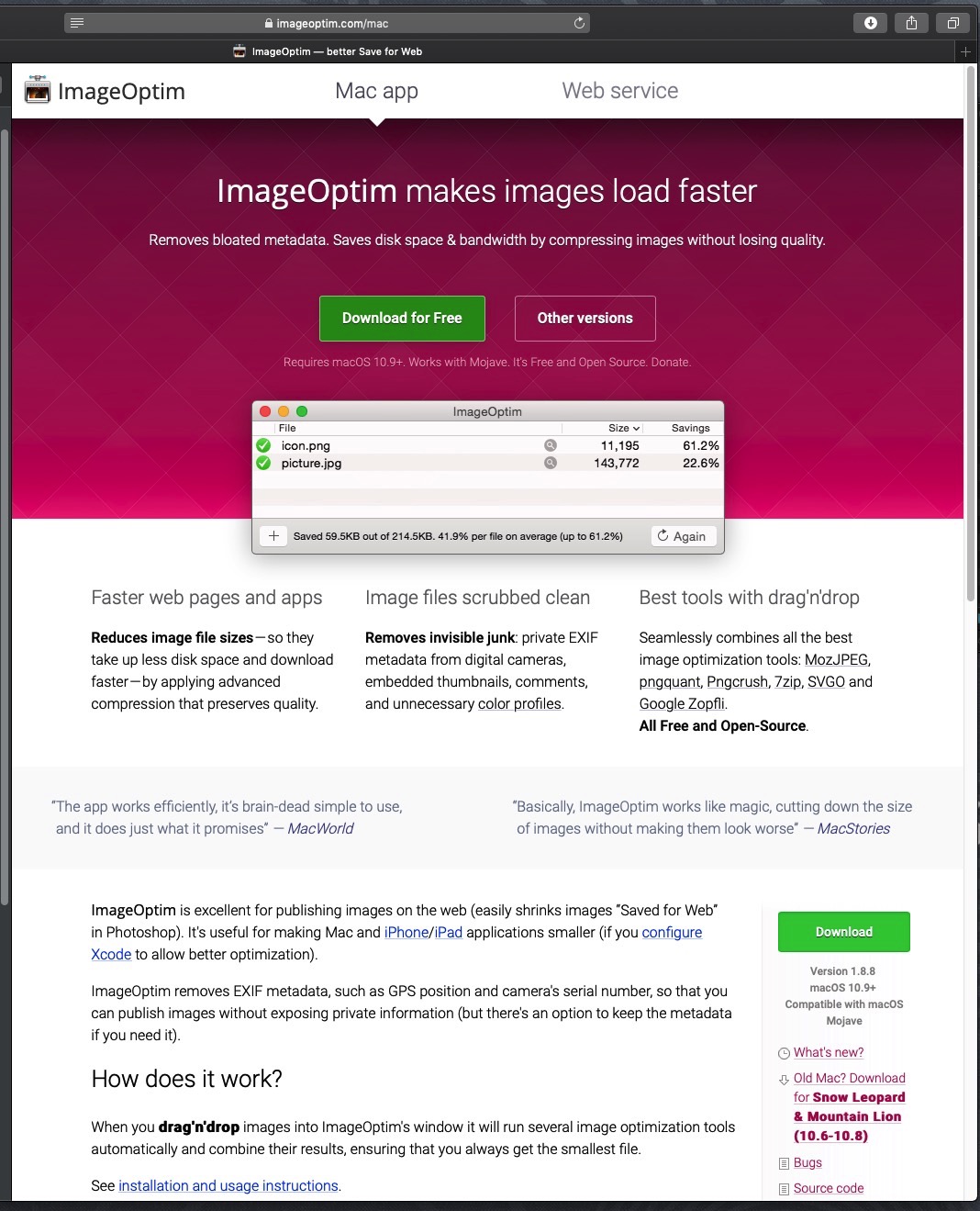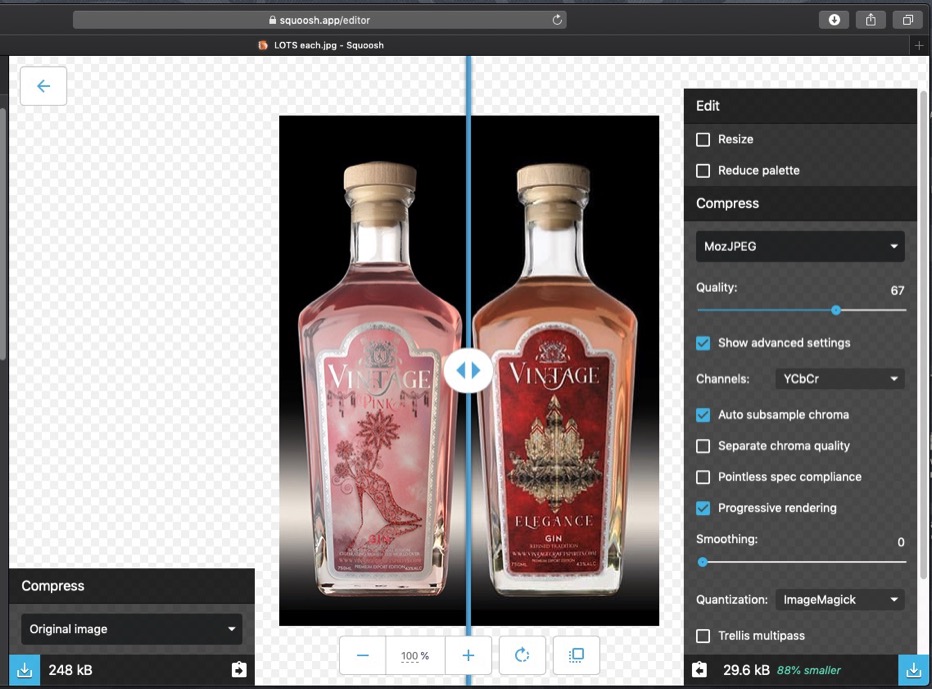 Free for MAC computers, this is a download, and it operates in a manner that is faster for Mac owners than the Squoosh reviewed here.